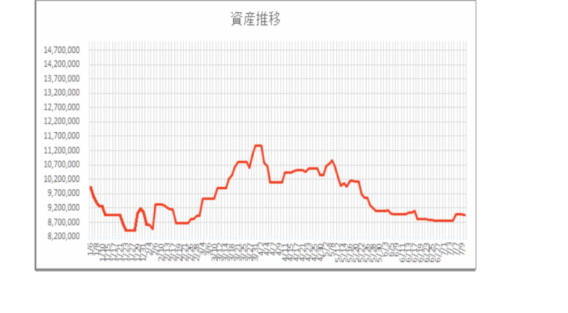 | 7/9 | 6857 | アドバンテスト | 売 | 10,745.0 | 100 | 11,100 | 7/10 | 11,100 | 100 | -35,500 |